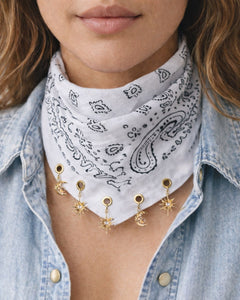 The Wild Trinket Bandana DIY Kit lets you transform a simple bandana into a moving, jangling, story-holding accessory using grommets, jump rings, and charms you attach by hand. No sewing required.